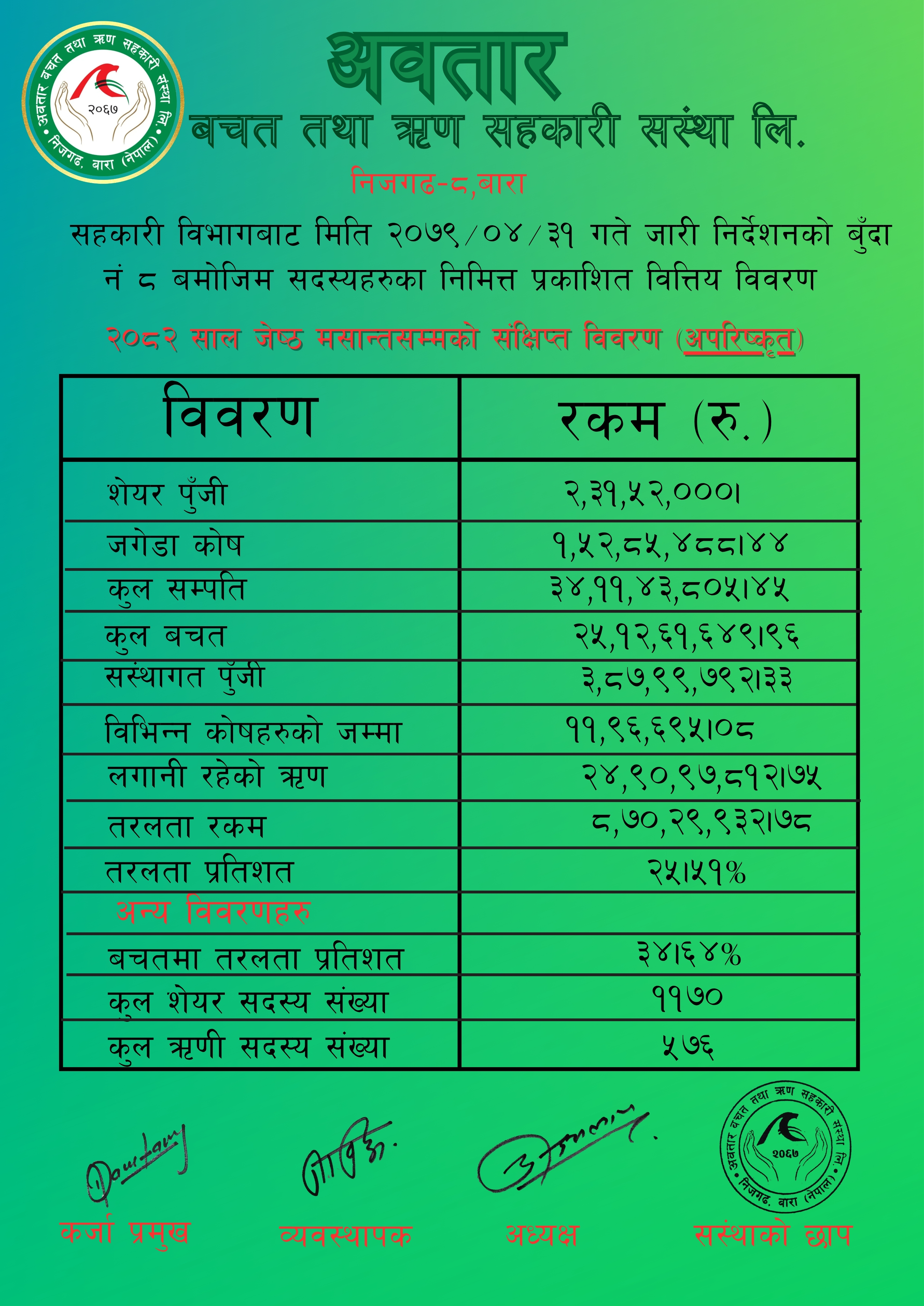 २०८२ जेठ महिनाको मासिक प्रतिबेदन